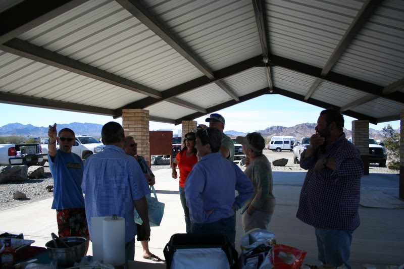 We all gathered at the picnic shelter in La Posa South, the LTVA BLM area in Quartzsite, AZ. I think there were 41 of us, 39 Dreamers and 2 guests. Lots of good food. We brought hamburgers and cupcakes.